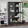 Unbranded 31.50 in. W x 12.60 in. D x 59.00 in. H Black Linen Cabinet with Adjustable Shelves and Four Glass Door TOUTD1319
