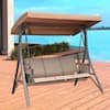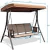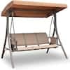 Cisvio 3-Person Brown Metal Outdoor Patio Swing Chair with Storage Pocket Bag Canopy Heavy-Duty Frame Hanging Glider Seating D0102HA9LKY