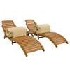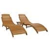 Afoxsos 3-Piece Acacia Wood Outdoor Patio Extended Chaise Lounge Set with Foldable Tea Table and Brown Cushions HDSA05OT014