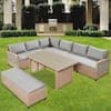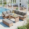 Cesicia 5-Piece Brown Wicker Outdoor Sectional Sofa Set Patio Conversation Set with 2 Extendable Side Tables in Gray Cushion AN016orange14