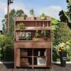 Crafted from 100% fir wood with reinforced triangle bars, this potting table offers durability and stability, even under heavy loads. Equipped with anti-falling devices and magnetic cabinet doors, it ensures safety and prevents dust and insects from entering, enhancing long-evity. With 3-tier shelves, 2-spacious drawers and a cabinet with double shelves, it provides ample storage space for organizing gardening tools and plants. Its rustic design and 34 in. H make it a perfect workstation for comfortable gardening tasks. Easy to clean and maintain, this potting table is ideal for gardeners seeking convenience and practicality in their outdoor space.