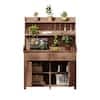 Unbranded 65 in. Garden Potting Bench Table, Fir Wood Workstation with Storage Shelf, Drawer and Cabinet in Brown FJRDM0409114