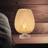 OUKANING 8.66 in. Beige Table Lamp for Living Room Desk Decoration Bedside with Weaving Natural Bamboo Shade HG-HS338-546