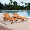 Add style and relaxation to your outdoor living space with this attractive Eucalyptus Wood Outdoor Reclining Chaise Lounge Chair. The lounge chair is made from durable eucalyptus wood that will stand up to varying weather conditions. Plus, it includes 2 wheels on the back, making transport a cinch. Its stylish design pairs seamlessly with any accent pieces in your outdoor space. These outdoor chaise lounges are the perfect way to add some relaxation to you patio and backyard.