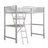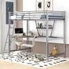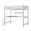 ANBAZAR Silver Twin Size Loft Bed with L-shaped Desk and Shelf, Metal Loft Bed with Guardrails and Ladder, Kids Loft Bed Frame 00042ANNA