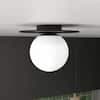 Pairing a modern canopy with a retro-inspired white milk glass globe shade, this flush mount ceiling light creates a classic mid-century look in your entranceway, hallway, or dining room. The enclosed glass shade diffuses light gently throughout your space without a glare. The metallic plate-shaped base artfully offsets the sleek orb, creating a clean on-trend look.