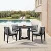 Create a welcoming dining space for guests with the Grand outdoor round dining table from Armen Living. Featuring a sleek and refined design, this patio table remains a modern and versatile staple for outdoor patio furniture. The slat style tabletop helps elements to easily pass through which adds to its durability while it's unique sled leg base adds convenience by providing ample legroom. The chic aluminum table and frame feature a multi-layer powder coating for effective protection from the weather, everyday wear, and tear. Aluminum is a light and rust proof material and can easily be moved to your desired location. From enjoying meals outdoors to having meaningful conversations and enjoying a great view, this patio table remains a great way to utilize your backyard, patio, pool area, garden, or screened-in porch. This dining table serves as a convenient-piece of outdoor furniture as it's perfectly rounded to serve as a natural spot for conversations. This patio dining table makes a sleek statement with the smooth and sturdy black powder coated finish, it can easily incorporate into your existing decor. The Grand round outdoor patio dining table is 48 in. Dia and can accommodate up to 6 seats.