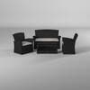 Enjoy outdoor relaxation and entertaining with the Barton 4-piece wicker sofa set with a glass-topped table. Sturdy steel frames and hand-woven resin wicker construction combine to create furniture that is attractive, durable, and weather-resistant. The design has a contemporary appeal, extra wide seat width and depth perfect for your body. It is perfect addition for the pool, park, the garden and the country yard.