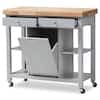 Baxton Studio Hayward Gray Kitchen Cart with Pull Out Garbage Bin 143-7947-HD