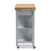 Make entertaining as easy as a breeze with the Hayward kitchen cart. The Hayward's clean, simple coastal design will add charm to any kitchen and dining area. The natural-finished, thick rubberwood top offers a convenient prep and serving surface while the cart features four shelves and two drawers for extra storage and function. The Hayward also features a delightfully paneled pull out garbage compartment on metal slides for even more convenience. The light grey finished frame make this charming kitchen cart a breeze to coordinate with your kitchen and dining room decor. Made in Malaysia, the Hayword requires assembly.