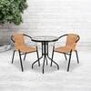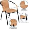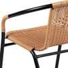Complement your terrace and patio with these beautiful rattan chairs to surround a patio table or to seat waiting guests in the lobby. Versatile inside and outside the restaurant these lightweight stack chairs are a practical choice for any business. The full back with integrated arms provides comfort to customers. When used indoors the metal chairs have floor glides to protect your flooring and stack up to 23 high to clean floors and to store.