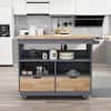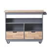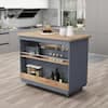 Tileon Blue Rolling Kitchen Island with Wood Top, Kitchen Cart with Wheels, 2-Drawers and 3 Open Shelves AYBSZHD255