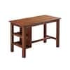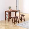 Versatility and rugged charm go hand-in-hand with our Brittany rectangular dining table with storage shelves. The acacia wood and metal dining table feature a multistep wire-brush finish which enhances the natural beauty of the wood even more. This multi-function dining table also features 2-tiered bookshelf surrounded by decorative metal accents to display cookbooks, decorative accessories and more. However, you choose to use this functional piece, make it yours by adding four of your favorite stools (like the Boraam Sonoma Saddle Stools - sold separately). The Brittany dining table comes in your choice of dining or bar height options. Both options are available in Chestnut Wire-Brush Finish.