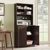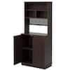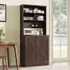 Keenyah Dark Walnut 70.86 in. Kitchen Pantry Cabinet with Microwave Stand, FarmhouseTall Bar Cabinet for Dining Room