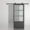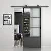 CALHOME 24 in. x 84 in. 3/4 Lites Frosted Glass Black Steel Frame Interior Sliding Barn Door with Hardware Kit and Door Handle GSB-002-FROST-24INCH