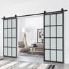 CALHOME 72 in. x 84 in. 12-Lite Frosted Glass Black Aluminum Frame Interior Double Sliding Barn Door with Hardware Kit LKM12-36-FROST(2)+CNNT-MK