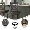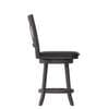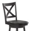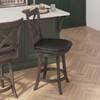 Lend classic style to any home or business with this upholstered wooden counter height swivel stool. The classic crossback design and soft and durable LeatherSoft upholstered seat blend old and new for a charming style. The integrated footrest provides pressure relief for your legs and the sturdy, solid wood frame holds up to 300 lbs. static weight. The 360° swivel seat makes for easy conversation and movement while the fixed floor glides prevent damage to hard flooring surfaces. Cleanup is easily achieved with a dry cloth and assembly is a breeze with the included tools and step-by-step instructions. Also available in bar height, this dining stool would make a perfect addition to any commercial or residential space.