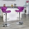 This sharply designed purple adjustable height bar stool may be the most comfortable, attractive piece you will ever buy with its ergonomically curved seat and back. The mid-back design will allow you to relax your back. The easy to clean vinyl upholstery is perfect when being used on a regular basis. The height adjustable swivel seat adjusts from counter to bar height with the handle located below the seat. The chrome footrest supports your feet and relieves pressure from your legs while also providing a contemporary chic design. To help protect your floors, the base features an embedded plastic ring. You're sure to receive complements with this stool in your home.