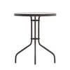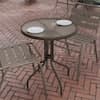 Whether you need to add more seating space or create an intimate conversation area, this versatile round tempered glass top table is up to the task. Enhance the look of your bistro, cafe, restaurant, hotel or home patio space without taking up too much real estate. The ripple designed table top features a smooth surface for keeping items level. A bronze powder coat finish lends the round-shaped table a bold, versatile appearance that matches well with your favorite chairs. Designed for all-weather use, this table is a great option for indoor and outdoor settings. For longevity, care should be taken to protect from long periods of wet weather. Whether you are just starting your business or upgrading your furniture this table is a wise investment.