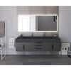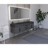 This beautiful, modern, wall-mounted vanity set comes with a base made from high quality birch and plywood and a top made of durable solid surface (a type of man-made stone). Its modern minimalist look is enhanced by its mounting to the wall which gives the appearance that the vanity is floating. Drawers and doors feature soft close hinges and slides to prevent slamming as well as sleek concealed pull handles to enhance the look without sacrificing function. The top features an elegant and modern sink with a basin sloped towards a subtle drain that gives the piece a sleek aesthetic and unparalleled sophistication. This vanity will be a stunning addition to any bathroom renovation. Note: Faucet not included. There may be slight variations in color, size or finish compared to what is pictured.