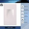 This elegant step light can cast soft light on the stairway or on your pathway highlighting the architectural design and provides ample warm white light in dark that creates an attractive, romantic impression at night. This dimmable LED light produces 3000K warm light with a brightness of 120 Lumens helping to keep steps illuminated and safer. Available in 3 different finishes Black White and Silver that blends perfectly with the surroundings. Uses only 3-Watt of the energy thus providing long term cost savings. ETL certified for its high quality, safe operation and its low energy consumption. Power consumption 3-Watt 120-Volt Dimmable Dimensions 2-7/8 in. L 4-3/4 in. H 3000K LEDBeam angle 120.