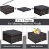 Enjoy your leisure time on patio or backyard with this 4-piece rattan sectional seating group. Our 4-pieces rattan sofa set includes 2 corner sofas, 1 armless sofa and 1 ottoman and each piece in this set is founded on a sturdy steel inner frame and wrapped in hand-woven PE wicker in a brown hue. Each component of this set can be used individually or in combination, easily changed to different layouts and combinations based on your need. With 3 soft pillows and polyester fabric cushions, it ensures comfort and long-lasting use. Equipped with zippers, the covers of cushions are easy to remove and clean. And the chic design is perfect for your dining room, kitchen, garden, patio, poolside, porch and suited for 3-4 people to eat and talk.