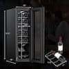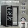Fix your wine up with our freestanding wine cooler This wine cooler features a high-end touch control and it will auto-lock when there is no operation for 20 seconds. There are built-in LED lights to ensure the visibility and will turn off when there is no operation for 10 mins. The wide range of temperature control with 360° fan-forced cold air circulation is suitable to store and age various wines. And the temperature memory function enables the wine cooler to remain the same setting before and after power breaks down. A double tempered glass door reduces the influence of the surrounding environment on temperature and humidity. This wine cooler with a compact design is equipped with solid steel shelves that can store up to 12 bottoms of wine.