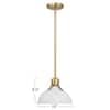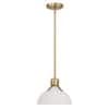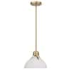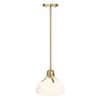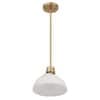 Robert Stevenson Lighting Delano 1-Light Brushed Gold and White Pendant Light with Metal and Etched Glass Shade, No Bulbs Included EC1532B