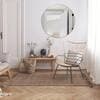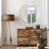 The Design House Kenna 36-Inch Round Gold Decorative Wall Mirror brings a blend of modernity and elegance to your walls. Its sleek gold metal frame not only adds style but also creates depth and dimension within your space. With its substantial size and minimalist design, this wall mirror is perfect for amplifying both natural and artificial light, thus illuminating various areas like bedrooms, bathrooms, hallways, entryways, living rooms, and offices. The mirror is inset within the frame, enhancing the overall sense of depth and dimension in your surroundings. It arrives at your doorstep with enhanced packaging, ensuring a safe delivery without damage. Crafted with a medium density fiberboard backing, this mirror reduces the likelihood of warping that can be associated with solid wood backings. This choice of material also enhances stability, offering a reassuring durability. For your convenience, this mirror, despite its size, is impressively lightweight. It arrives ready to adorn your wall straight out of the box, complete with the necessary mounting hardware. Designed and manufactured by Design House, the trusted source for quality lighting, hardware, plumbing, kitchen, and bath products for every taste and budget.