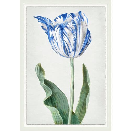 These antique floral print reproductions captivate with the expressive folds of each leaf and the blue striations on each tulip petal. From the Lillian August art collection, every piece is printed on premium matte paper, carefully framed, and ready to hang.