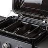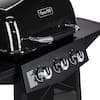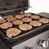 The Dyna-Glo 3-burner Open Cart Propane Gas Grill in Black features (3) 8,000 BTU stainless steel burners with a total cooking area of 449 sq. in. The 310 sq. in. primary cooking area houses easy to clean porcelain cooking grates and porcelain coated heat tents that help vaporize foods natural juices to add flavor to your food while spreading the heat to create an even cooking surface. The porcelain enamel warming rack provides an additional 139 sq. in. to keep food warm and 2 large side tables furnish extra food preparation space. The high gloss black porcelain finish of the grill lid ensures easy cleanup and 2 wheels make it simple to reposition your grill once its cooled off.