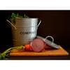 An attractive and easy to clean compost bucket that fits right in on your counter top. The decorative outer bucket is kept clean by a plastic inner bucket. Just remove the easy to carry inner bucket and transport the organic material to your compost bin or pile. The lid comes with a clear rubber seal to limit any odors that might attract insects. It is the perfect size to keep on top of a kitchen counter and there is no need to hide it.