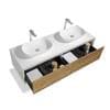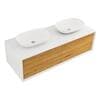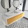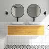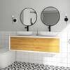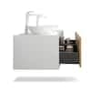 Create a sleek design with this wall-mounted bathroom vanity. Easy clean the floor and easy to use the gap between the floor and cabinet. With the patented U-shaped drawer, the cabinet has plenty of storage space for all of your toiletries. A wonderful color match of oak and matte white offers an elegant look. Create a minimalist look by using the concealed handle to make the surface complete.