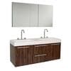 Fresca Opulento 54 in. Double Vanity in Walnut with Acrylic Vanity Top in White with White Basins and Mirrored Medicine Cabinet FVN8013GW