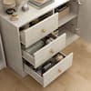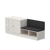 FUFU&GAGA White 23.6 in. Height x 63 in. Width Wooden Accent Storage Cabinet, Sideboard with Black Seat, 3-Drawers and 4-Shelves L-THD-150187-01-c
