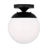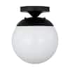 Leo 8 in. 1-Light Midnight Black Flush Mount with White Glass Shade and LED Light Bulb