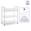 The Graco Lauren Changing Table provides a safe and convenient place to change and dress your baby. Two large shelves offer an abundance of space to store baby supplies and other necessities within reach. The Graco Lauren Changing Table includes a 1 inch vinyl changing pad with safety strap that provides added comfort and security for your baby. The changing table's four wheels, two locking, allow for easy mobility throughout the home. The Graco Lauren Changing Table is certified by the Juvenile Products Manufacturers Association (JPMA) and is stringently tested to meet or exceed all applicable federal safety standards to ensure the safest product for your child.