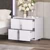 Polibi Elegant Wood Nightstand with Metal Handle, Mirrored Bedside Table with 2-Drawers, White RS-W09SN-W