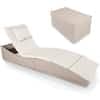 Gray Wicker Outdoor Adjustable Chaise Lounge Chair with Gray Cushion and Cream Rattan Cushions