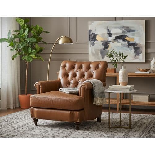 Acton Tufted Club Chair - Saddle Leather - Miles Talbott - Hancrafted in the USA | Lounge Chair, Armchair - Brown - Comfortable, Sturdy, Durable