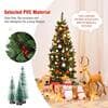 Decorate your home with our pre-lit pencil Christmas tree to embrace the warm festival feeling. This 4.5 ft. artificial tree is designed with hinged structure to make the assembly easy. You can feel the coming of the festival quickly. Made of odorless PVC material, the tree is safe and non-flammable for a long lifespan. Sturdy metal stand will offer good support to keep the tree upright. 150 warm white LED lights can save your time to set up electric lines. Moreover, it is equipped with 452 branch tips and 39 groups of pine cones and red berries to offer you a full and realistic look. It features unique slim shape, so you don't worry about it taking up too much space.