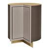 Remodel your kitchen or add built-in storage in your laundry room, family room, or home office with the Westfield cabinet collection. This versatile wall and base kitchen cabinetry collection creates a timeless yet contemporary look with its full-overlay Shaker doors with 2.25 in. rails and stiles complemented by slab drawers. Part of the Westfield collection, this lazy Susan corner cabinet allows you to add organized easy-access corner storage in your kitchen. Designed to be installed between 2 existing cabinets, this drum-shaped base cabinet includes a 2-tiered lazy Susan that features a revolving door with 2 attached white plastic shelves that rotate smoothly around the interior pole for easy access to all your kitchen essentials. This dusk gray base cabinet features a durable decorative laminate veneer finish on the doors, matching finished sides, and an interior natural maple finish.