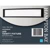 This 24 in. LED Vanity Light from Hampton Bay offers a clean transitional design to complement any decor. The Matte Black finish coordinates with most bath faucets and accessories. Our LED light source and opaque acrylic lens provides a warm bright light equal to three 60-Watt incandescent bulbs but using only 23-Watt of energy, a savings of over 85%. Other benefits from the LED light source in the vanity fixture is that it also generates 85% less heat than a typical incandescent fixture helping to keep your bathroom or powder room cool and with the integrated LED light source there are no bulbs to change.