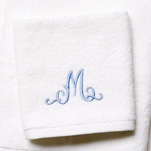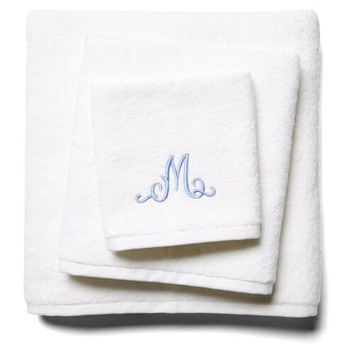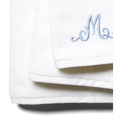 Created exclusively for One Kings Lane, indulge in this collection of spa-quality towels with a weight of 650 grams per square meter. With an embroidered script monogram, these soft combed cotton towels offer both elegance and absorbency.