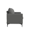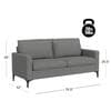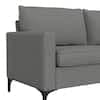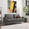 They call them living rooms for a reason, right? With this Modern Couch, find a place to sit-and live-in stylish comfort. This living room couch with two wide, removable cushions for easy cleaning comfortably seats up to three people and is fully covered in a neutral, smoke gray upholstery with corded-edge finishing for added visual appeal. Plus, extra details like the square arms and sleek black metal legs give this couch a contemporary-yet-transitional look and feel that lets it adapt to many types of decor styles for years of enjoyment. Assembly required.