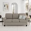 You don't have to venture to the desert to find an oasis-create one in the heart of your home with this Traditional Couch. With three removable cushions that make cleaning it a breeze, this living room couch seats three comfortably and is fully covered in a cozy, greige upholstery that will make it your favorite place to lounge and relax after a long day. Plus, rolled arms and corded-edge detailing on the cushions give this traditional piece a classic flair that make it adaptable to any decor and able to be enjoyed for years to come. Assembly required.