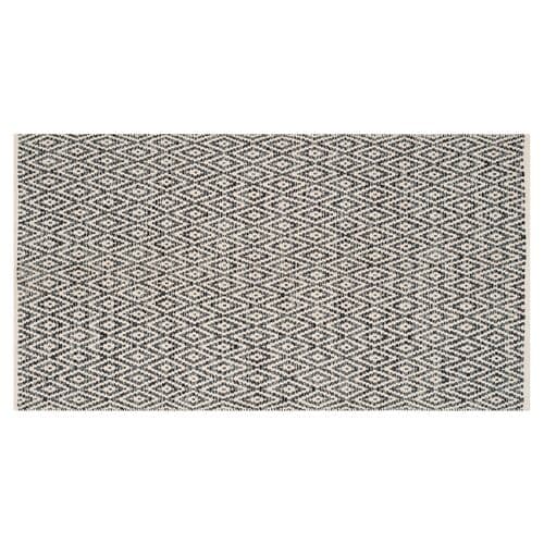 Crafted in contrasting neutrals, this handwoven cotton rug revitalizes spaces with its dynamic pattern. A rug pad is suggested to prolong the rug's life and secure it in place.