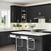 Grayson Deep Onyx from Home Decorators Collection is a Transitional Shaker door style featuring a square raised center panel. 3/4" thick MDF door with 3" outer styles and rails. This dark gray painted finish allows you to explore many different decorative styles while creating a space that will make you feel right at home! This collection features as soft close doors and drawers and full depth shelves. Decorative furniture moldings and trim panels enable you to create that custom built-in look. The matching base end panel is constructed to match the cabinet door style and can be applied to the side of a 24 in. deep cabinet to give a custom paneled effect. Pacific Deep Onyx trim and moldings feature a durable Deep Onyx painted finish which will create a light, breezy feel in any kitchen.