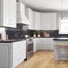 Grayson Pacific White from Home Decorators Collection is a Transitional Shaker door style featuring a square raised center panel. 3/4 in. thick MDF door with 3 in. outer styles and rails. Bright White painted finish. Decorative drawer fronts standard. Brighten your space and create a transitional look for many years. This collection features as soft close doors and drawers and full depth shelves.