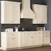 The Newport Blended Cream collection from Home Decorators Collection features a durable Blended Cream painted finish which will create a classic, softer feel in any kitchen. Shaker-style doors and drawer fronts are crafted from solid MDF with a flat recessed center panel. Cabinets feature CARB compliant all-plywood construction, with full-depth 3/4 in. thick adjustable shelves for added storage.